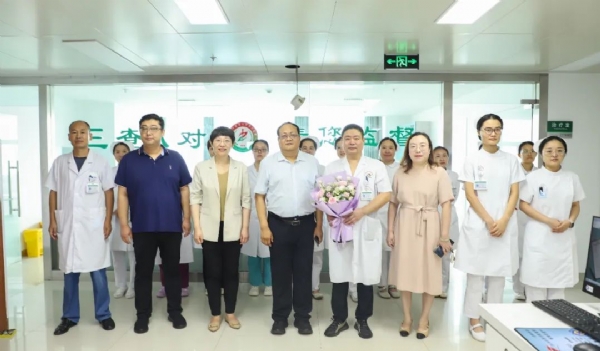 8月19日上午,党委书记周波带领医院党政领导班子及职能科室负责同志来到临床一线,为医务人员送去鲜花、蛋糕,送去节日慰问,向所有医务人员致敬,祝愿他们节日快乐,并鼓励他们继续秉持医者初心,敬畏生命,竭尽全力与疾病博弈,用无疆大爱与精淇技术推动医疗卫生事业向前发展。