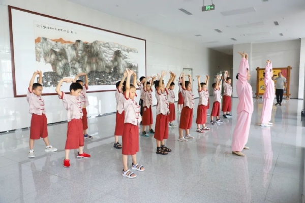 下午,八段锦汇演开始,小朋友学习模范能力很棒,一周的学习,打起八段锦来就有模有样……