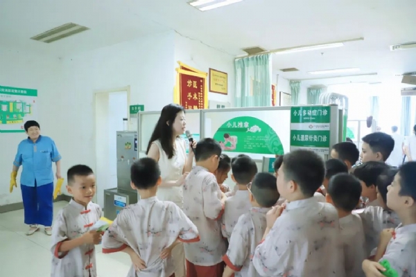 开班式结束后,小同学们参观了医院特色灸疗中心、针灸大厅,中医药文化馆,通过浅显提问式的互动,带领孩子参观了解了医院特色中医区域。