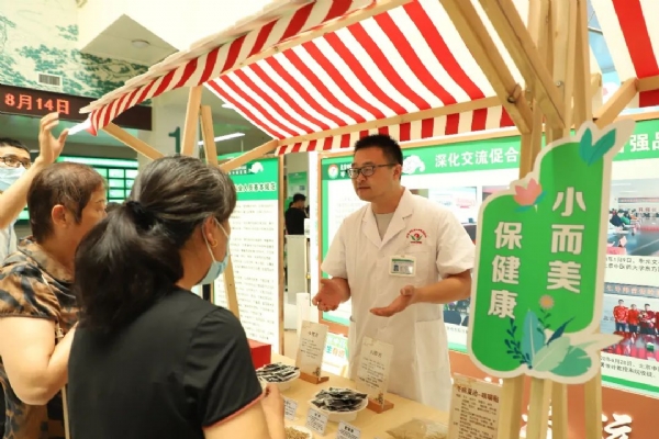中药材品鉴展示区,地道的中药药材、五彩缤纷的中药香囊、膏方等吸引了不少群众驻足打卡,中药学博士张洪冰耐心讲解道地药材的用法和功效,热情地介绍中药性状、性味,向群众普及辨别方法,用最为直接有效的方法传播广大群众喜闻乐见的中医药文化知识。