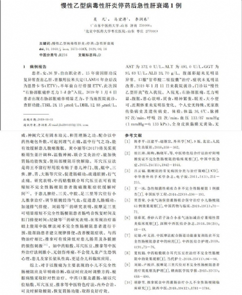 慢性乙型病毒性肝炎停药后急性肝衰竭1例