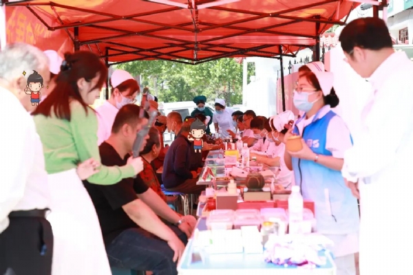 为庆祝第113个国际护士节,弘扬南丁格尔精神,传播中医药文化,5月14日上午,我院开展的国潮养生中医药文化市集活动第三站走进山亭区凫城镇驻地,我院联合山亭区卫生健康局、山亭区凫城镇卫生院,让凫城镇老百姓不花钱也能感受到正宗、专业的中医药文化。