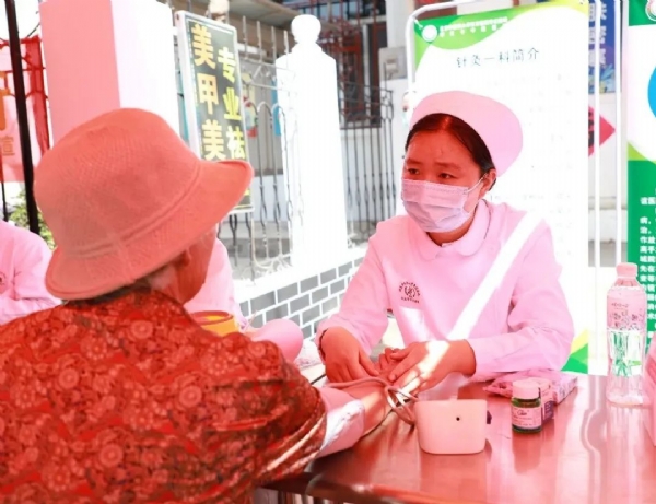 清晨的集市热闹非凡,闻讯赶来的群众早早排起了长队。活动现场,各项工作井然有序,在健康问询区,临床人员用“拉家常”的方式,热情、耐心地为群众问诊把脉,解答健康咨询,提供膳食和用药指导。在中医护理技术体验区,护理人员提供了耳穴压豆、刮痧、推拿等中医药特色服务;科普了中医降压操、手指养生操等中医养生常识,在场群众在体验特色疗法的同时,一招一式跟着模仿练习。在急救技能教学区,工作人员现场示范心肺复苏急救技能,讲解日常自救互救方法。在中药药材展示区,工作人员推介了我院院内制剂、膏方丸剂等道地药材及中药智慧煎煮、配送等惠民服务项目。