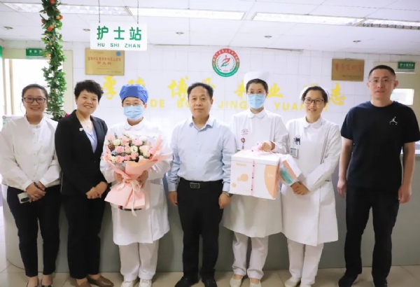 鲜花、蛋糕、笑声......,院领导的慰问与关怀,温暖着在场的每一位护士,大家充分感受到了来自医院大家庭的关心和爱护,大家表示在以后的工作中一定会继续以赤子之纯粹,不忘初心,勇毅前行,努力为患者提供更加高效、优质、安全的护理服务,不断提升患者就医获得感,让护理工作朝着更高、更远的方向前进,不断突破,勇攀高峰。
