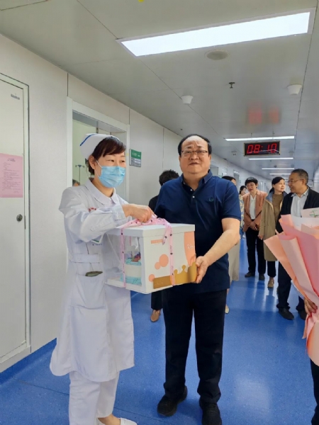 5月9日上午,在第113个“5.12”国际护士节来临之际,党委书记周波带领院领导班子成员、护理部主任,分别前往新城院区及东院区,深入临床科室,亲切慰问奋战在临床一线的护理人员,为她们送去了鲜花、蛋糕和祝福。