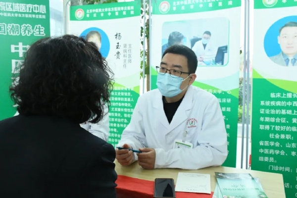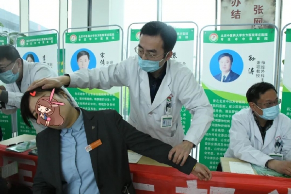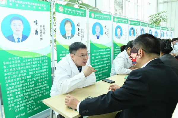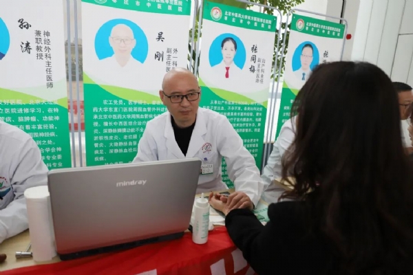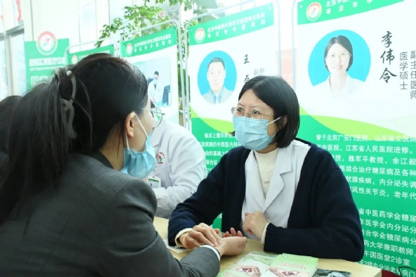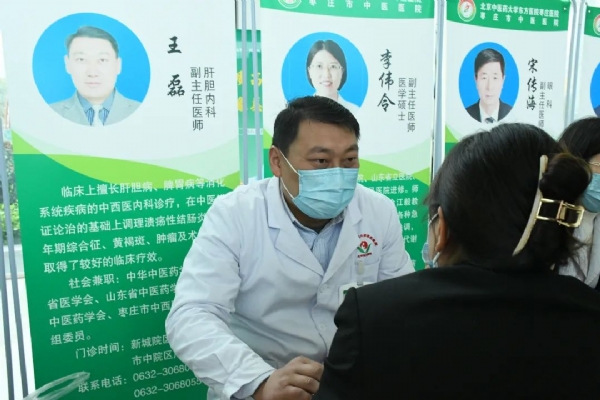 健康义诊区由北京专家崔杰教授带领的肝病科、针灸科、肾病科、眼科、内分泌科、外科、妇产科10余位高级职称专家医疗团队,为现场市民进行把脉问诊、检查治疗,耐心解答群众的问题并教授大家日常中医保健养生知识。