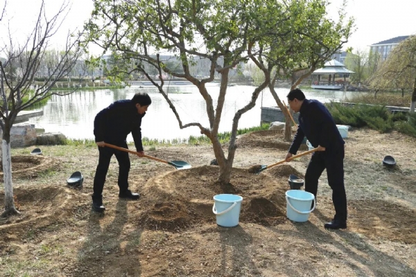 座谈交流结束后,与会领导在北京中医药大学良乡校区共同栽种了象征着团结和谐、寓意红红火火的石榴树。