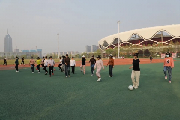 预热破冰完成,正式进入我们的主题活动环节,“带球环形”,全队上下,齐心协力,互相配合,努力确保环行过程中球不落地。
