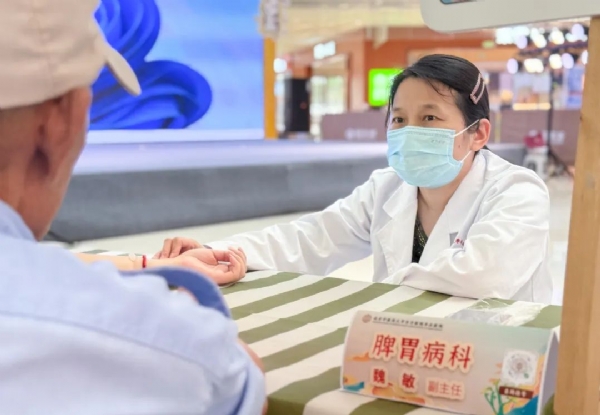 “运河医心·名中医义诊堂”内,北京中医药大学东方医院枣庄医院脑病中心、心血管病科、脾胃病科、妇产科、儿科、肝胆病科、治未病二科、风湿病科等科室带头人及青年骨干一一坐镇,为市民把脉问诊,结合夏季气候特点讲解养生要点:“出汗多易伤脾胃,饮食需忌生冷……”
