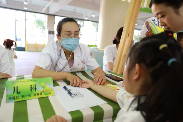 来自医院儿科、眼科、口腔科、针灸五科、治未病二科、妇产科、内分泌科、肝胆病科、脑病一科、中医护理门诊等专家团队,为幼儿园师生及家长提供“一对一”健康咨询服务。儿科专家通过望舌、把脉等方式,针对儿童夏季常见的积食、湿疹等问题给出调理方案;眼科医生借助视力表为孩子们进行趣味视力筛查,并科普护眼知识;口腔科专家则现场科普正确刷牙方法,带领幼儿共同开展“牙齿保卫战”。一位家长感慨:“没想到在幼儿园就能享受专业诊疗,孩子还学会了保护视力的小妙招!”
