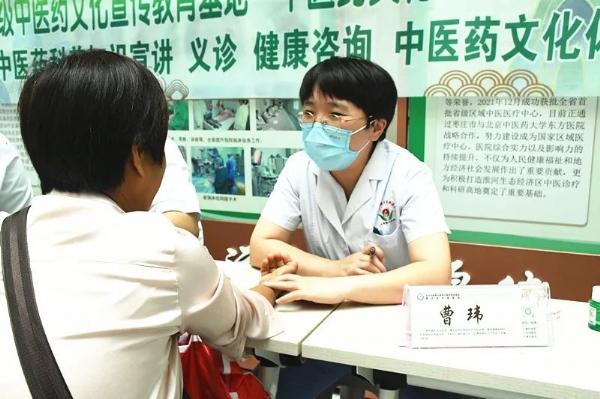 健康义诊区内,数十位中医专家细致地为现场的群众进行“一对一”把脉问诊、检查治疗,耐心解答群众的健康问题并科普中医日常的养生保健知识。