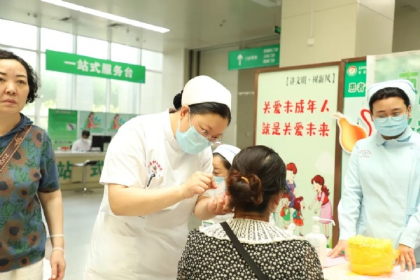 在中医适宜技术疗法体验区,护理人员现场演示并为群众进行了三伏贴贴敷、耳穴压豆、针刺放血等特色疗法体验,使参与的群众亲身体验到了中医适宜技术的简便、安全与有效。