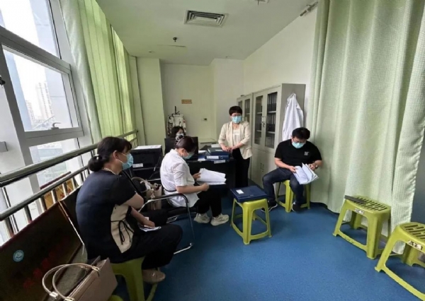 7月4日下午,枣庄市卫生健康委人才科王莉、枣庄市疾控中心病原微生物检验科科长张涛、枣庄市健康综合执法支队传染病监督科科长高茹茹、枣庄市妇幼保健院检验科副主任王淑艳等一行四人来我院开展生物安全专项督检,副院长王哲,医务部主任宋堃、检验科主任冯烨及检验科生物安全管理小组部分成员参加汇报会。