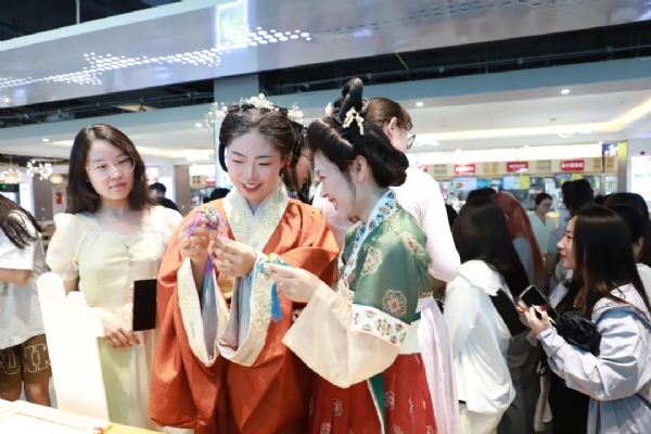 悬壶济世为中医,长风玉立韵汉服。市集现场,从切脉义诊到中药茶饮,从点穴推拿到砭石刮痧,浓郁的中医药文化氛围扑面而来,四周弥漫着淡淡的草药香气,令人心旷神怡,仿佛穿越古今,吸引着众多师生群众前来驻足体验……