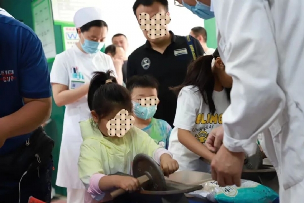 在游戏互动环节,孩子们进行了跳绳、拔河比赛,体验了中药香囊制作、传统碾药炮制技艺,学习了中药道地药材药理常识。