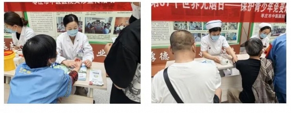 自2016年北京中医药大学东方医院枣庄医院规范化戒烟门诊成立以来,每年的世界无烟日不仅科室组织戒烟宣传活动而且积极参加市里及市卫健委组织的各项义诊活动,就在刚刚过去的5月30日脑病一科护士长田筱薇、医生盛宁也参加了市科技局和市卫健委组织的戒烟活动。