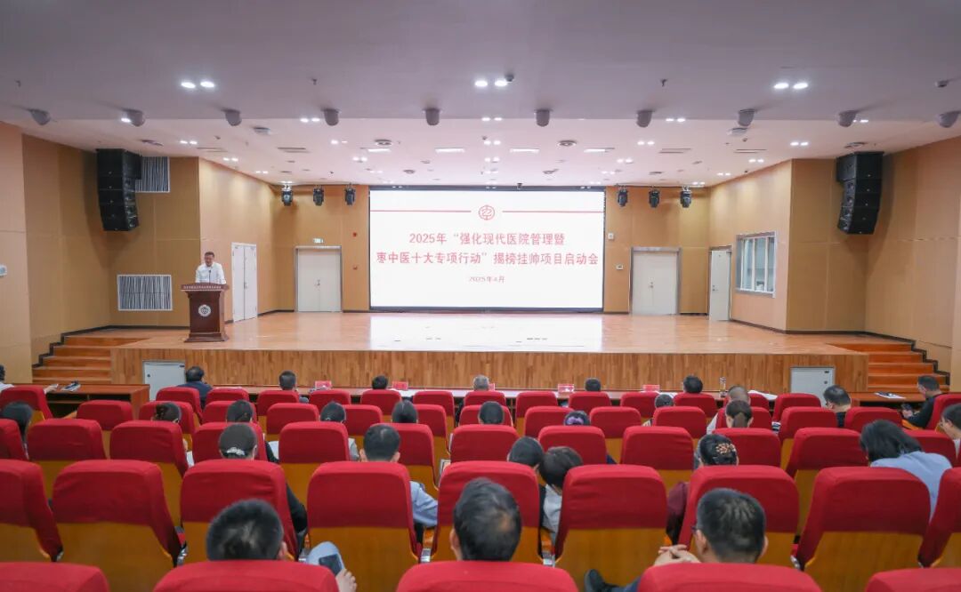 深入贯彻落实习近平新时代中国特色社会主义思想,推动医院高质量发展,4月29日下午,医院在负一学术报告厅隆重召开2025年“强化现代医院管理暨枣中医十大专项行动”揭榜挂帅项目启动会。医院领导班子成员、全体中层干部、项目组组长,以及党支部书记、支委参加启动会。纪委书记李洪杰主持会议。