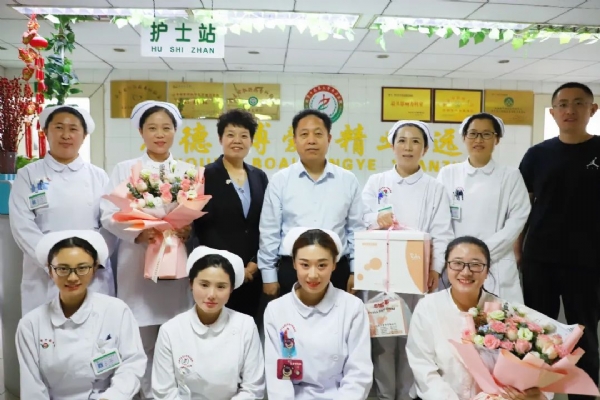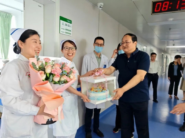 5月9日上午,在第113个“5.12”国际护士节来临之际,党委书记周波带领院领导班子成员、护理部主任,分别前往新城院区及东院区,深入临床科室,亲切慰问奋战在临床一线的护理人员,为她们送去了鲜花、蛋糕和祝福。