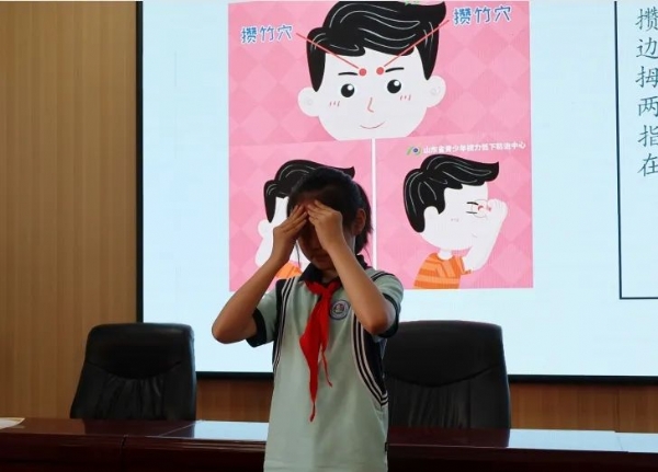 5月8日下午,根据市、区疾控中心学校卫生工作安排,薛城区临山小学为加强学生近视防控和规范眼保健操做法在学校多媒体教室开展临山小学“百家讲堂”系列讲座和眼保健操评比活动启动仪式。我院眼科宋传海副主任医师受邀为学校师生代表做近视防控知识讲座和眼保健操规范做法讲解。