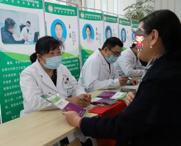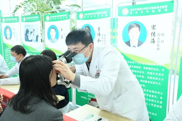 健康义诊区由北京专家崔杰教授带领的肝病科、针灸科、肾病科、眼科、内分泌科、外科、妇产科10余位高级职称专家医疗团队,为现场市民进行把脉问诊、检查治疗,耐心解答群众的问题并教授大家日常中医保健养生知识。