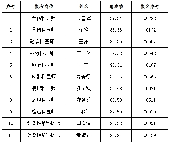 北京中医药大学东方医院枣庄医院2025年度第一批急需紧缺人才引进专业技能测试已经结束,根据公告要求,按照应聘人员总成绩,由高分到低分按1:1的比例确定进入考察、体检范围人选。现将人员名单予以公布。