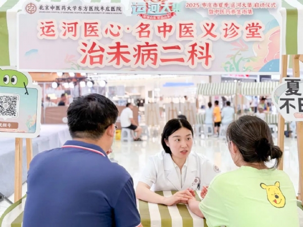 作为山东夏季文旅品牌“运河大集”的创新延伸,今年市集以“中医养生”为主题,将传统市集的烟火气与国医文化的厚重感巧妙融合。现场三大核心区域——“运河医心·名中医义诊堂”“运河传技·传统中医体验阁”“运河甘润·草本茶饮栈”沿主场地有序排布,吸引市民驻足体验。