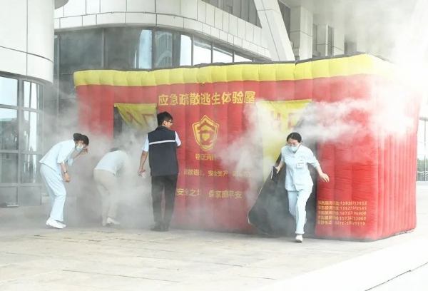 为深入贯彻落实全国“安全生产月”活动要求,全面提升医院消防安全管理水平,增强职工应急处置能力。6月9日,医院在新城院区和市中院区同步组织开展了以“人人讲安全、个个会应急”为主题的消防安全培训及模拟逃生屋演练活动,以“理论+实操”模式全方位提升职工应急能力。