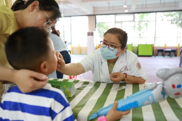 来自医院儿科、眼科、口腔科、针灸五科、治未病二科、妇产科、内分泌科、肝胆病科、脑病一科、中医护理门诊等专家团队,为幼儿园师生及家长提供“一对一”健康咨询服务。儿科专家通过望舌、把脉等方式,针对儿童夏季常见的积食、湿疹等问题给出调理方案;眼科医生借助视力表为孩子们进行趣味视力筛查,并科普护眼知识;口腔科专家则现场科普正确刷牙方法,带领幼儿共同开展“牙齿保卫战”。一位家长感慨:“没想到在幼儿园就能享受专业诊疗,孩子还学会了保护视力的小妙招!”